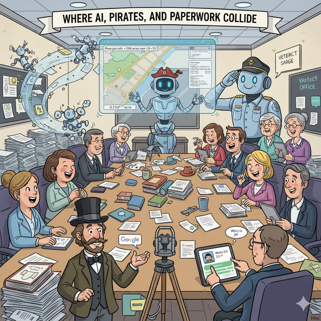 Theyโre not waiting for Silicon Valley to save rural America. Theyโre doing it themselves, one chatbot, one form, and one surprisingly well-dressed 1830s surveyor at a time.