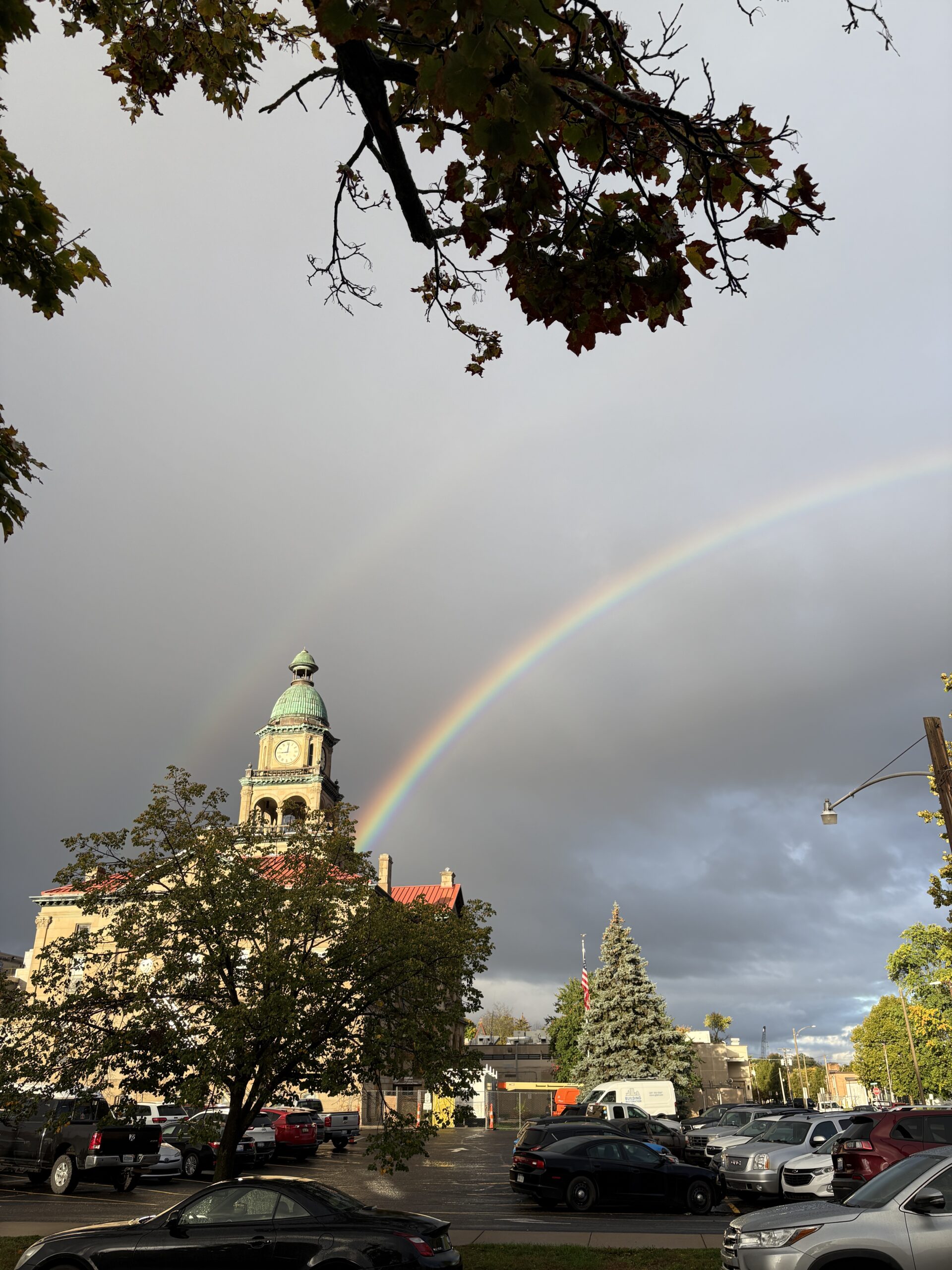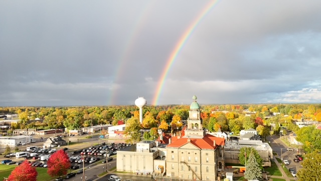 A brilliant double rainbow arced across the skies over Paw Paw, landing, with poetic precision, right on top of the historic Van Buren County Courthouse. Yes, the same courthouse currently surrounded by the not-so-subtle signs of active refurbishment. Even under construction, the old building still knows how to take center stage.